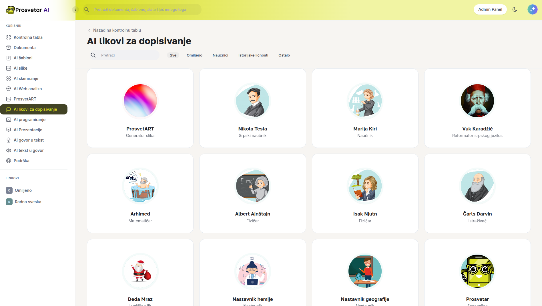 Prosvetar AI je sveobuhvatna digitalna aplikacija namenjena nastavnicima, profesorima i obrazovnim radnicima, osmišljena da unapredi pripremu i realizaciju nastave uz pomoć veštačke inteligencije. Platforma omogućava brzo kreiranje nastavnih materijala, testova, radnih listova i planova časova, prilagođenih nastavnim programima osnovnih i srednjih škola. Fokus aplikacije je na uštedi vremena, povećanju kvaliteta nastave i pružanju podrške nastavnicima u svakodnevnom radu.